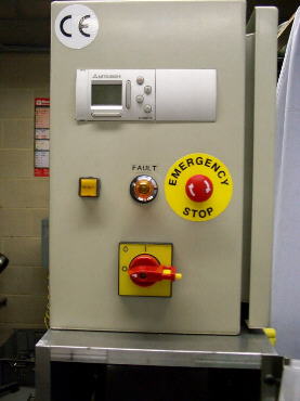 operators panel incorporates a PLC based controller with an LCD message display. In normal operation, the display provides a counter, indicating the number of successful test cycles completed. Should a fault develop, the display immediately identifies the failure, allowing simple diagnosis of faults. Each test station incorporates a full safety system, including an Emergency Stop push button, together with dual circuit guard safety interlocks. Safety circuits incorporate an emergency stop relay to comply with CE regulations. |
